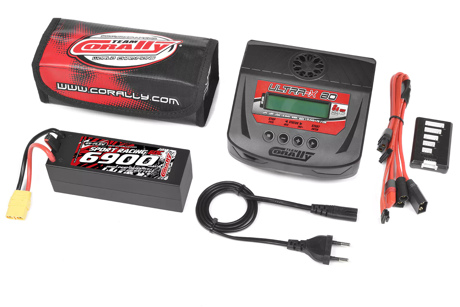 Team Corally - Energy Pack - Lipo 50C - 6700Mah - 4S - XT-90 - Hard Case + Ultra-X 80 - 1-6S AC/DC Charger + Lipo Safety Bag + Charge-Balance Lead